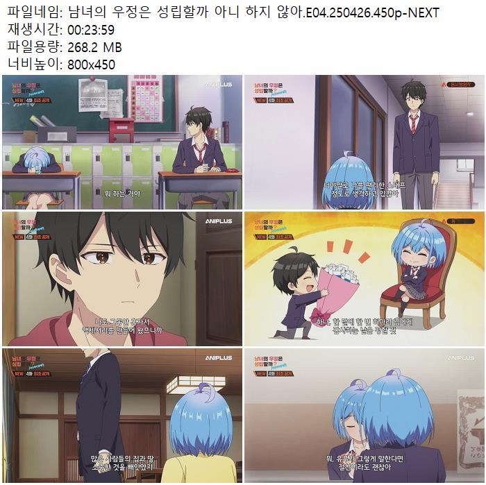 | 남녀의 우정은 성립할까 아니 하지 않아.E04.250426.450p-NEXT.mp4 | 268.2 M | - | 800x450 |