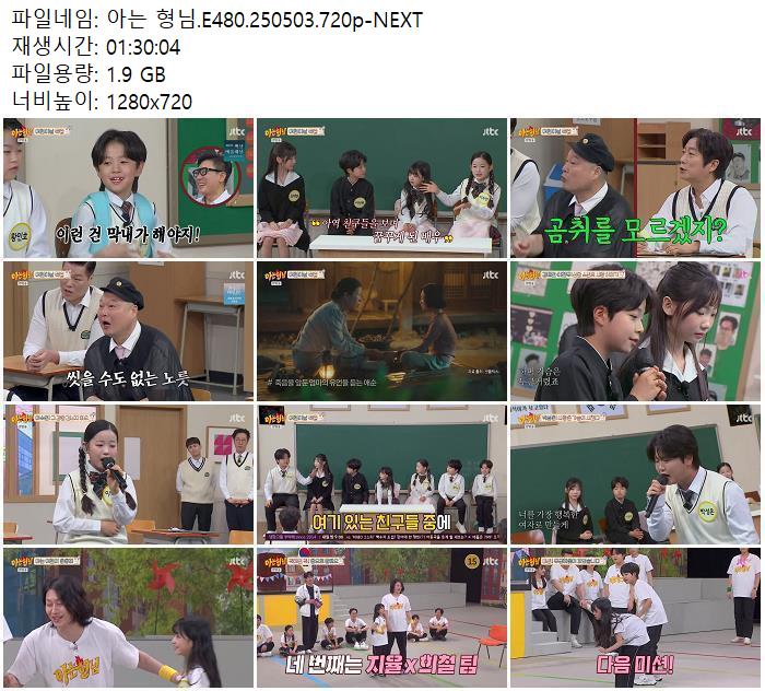 | 아는 형님.E480.250503.720p-NEXT.mp4 | 1.9 G | - | 1280x720 |