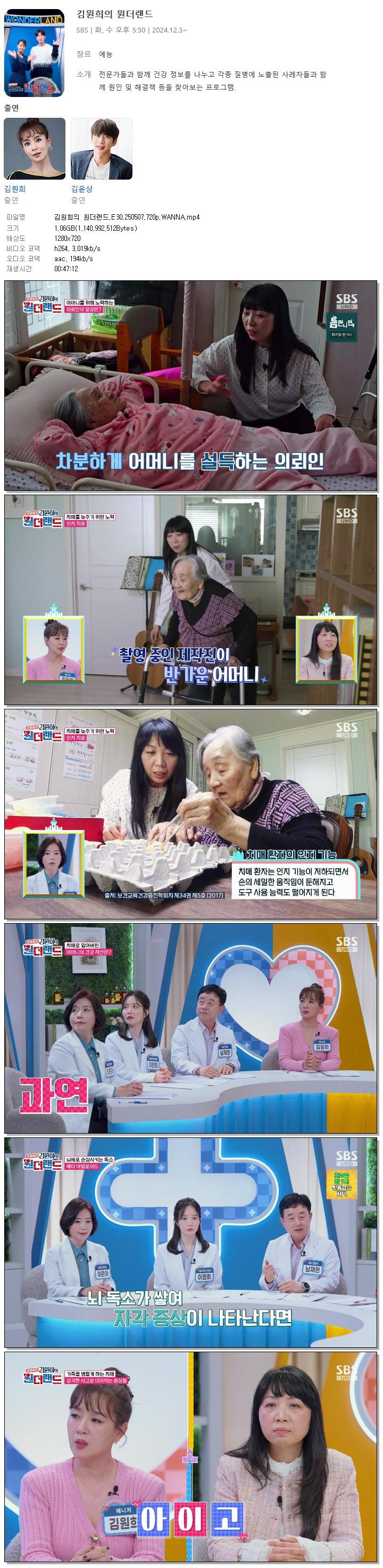 | [SBS] 김원희의 원더랜드.E30.250507.720p.WANNA[김원희, 김윤상].mp4 | 1.1 G | 00:47:12 | 1280x720 |