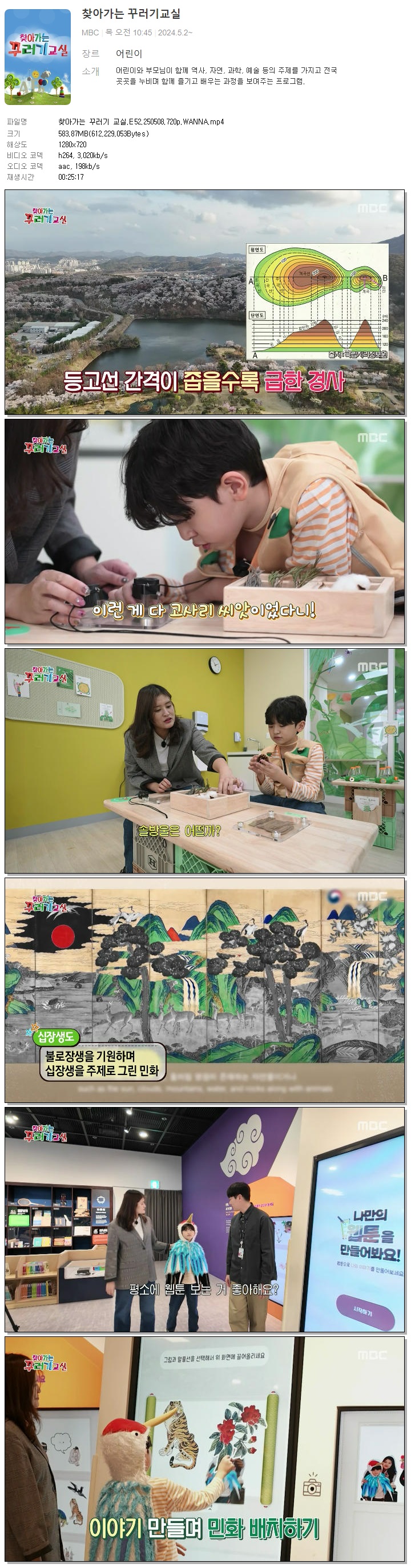 [MBC] 찾아가는 꾸러기 교실.E52.250508.720p.WANNA.mp4 583.9 M 00:25:17 1280x720
