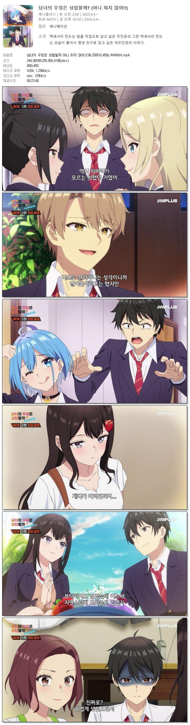 | 남녀의 우정은 성립할까 아니 하지 않아.E06.250510.450p.WANNA.mp4 | 244 M | 00:23:48 | 800x450 |