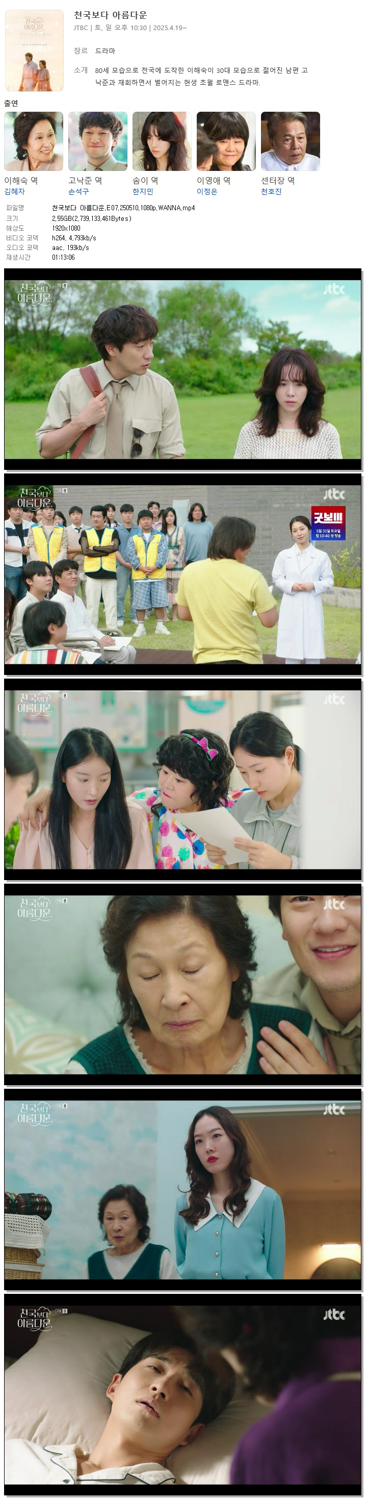 [JTBC] 천국보다 아름다운.E07.250510.1080p.WANNA[김혜자, 손석구].mp4 2.6 G 01:13:06 1920x1080