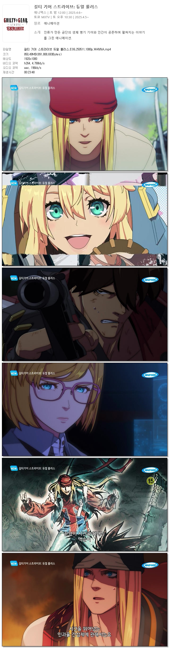 | 길티 기어 스트라이브 듀얼 룰러스.E06.250511.1080p.WANNA.mp4 | 850.5 M | 00:23:48 | 1920x1080 |