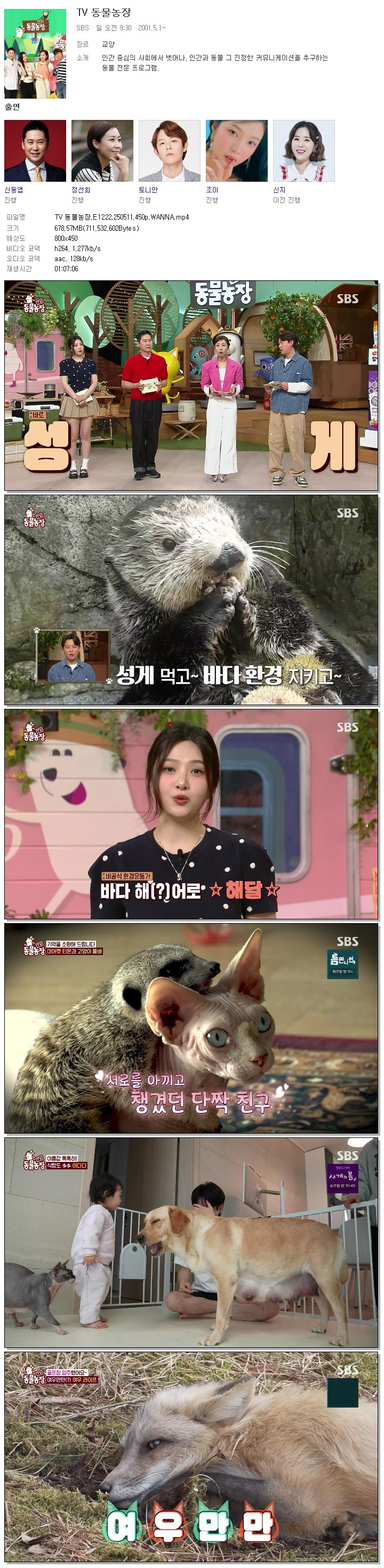 [SBS] TV 동물농장.E1222.250511.450p.WANNA[신동엽, 정선희].mp4 678.6 M 01:07:06 800x450