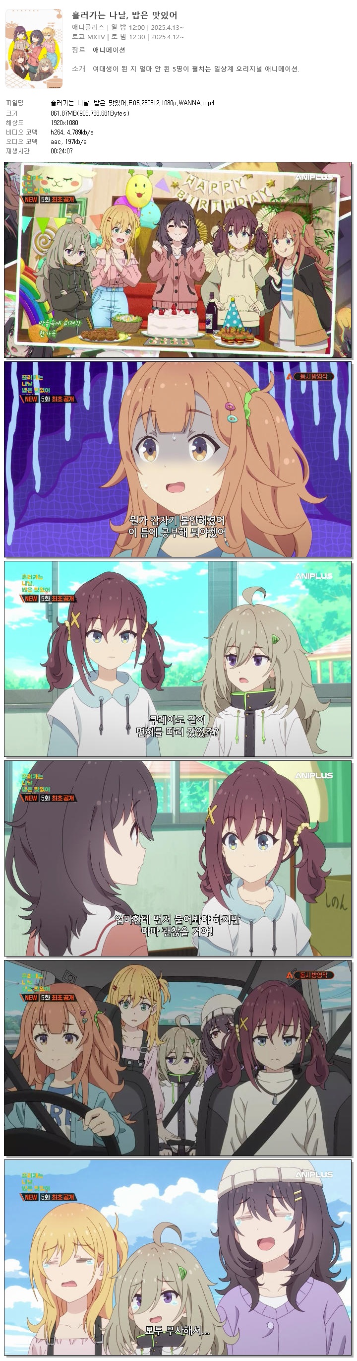 | 흘러가는 나날, 밥은 맛있어.E05.250512.1080p.WANNA.mp4 | 861.9 M | 00:24:07 | 1920x1080 |