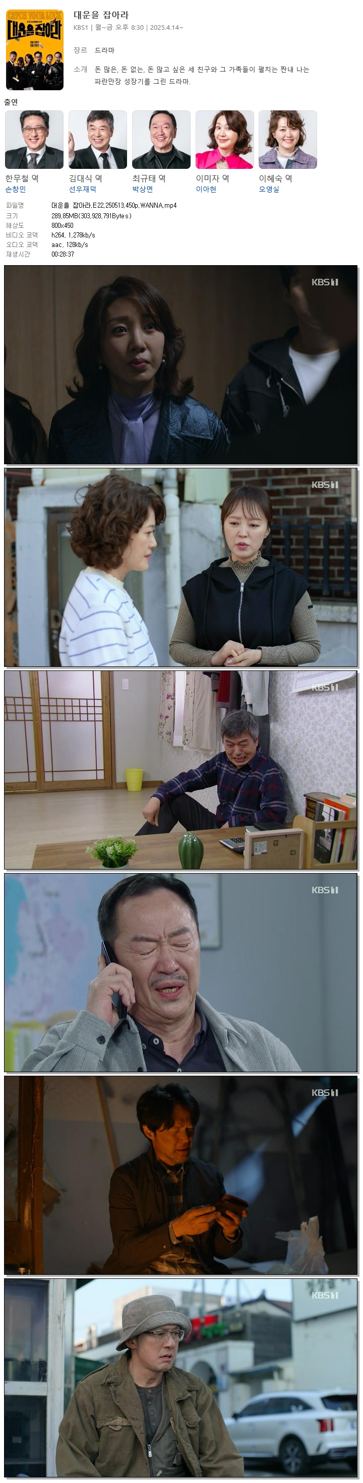 [KBS1] 대운을 잡아라.E22.250513.450p.WANNA[손창민, 이아현] 다시보기 토렌트