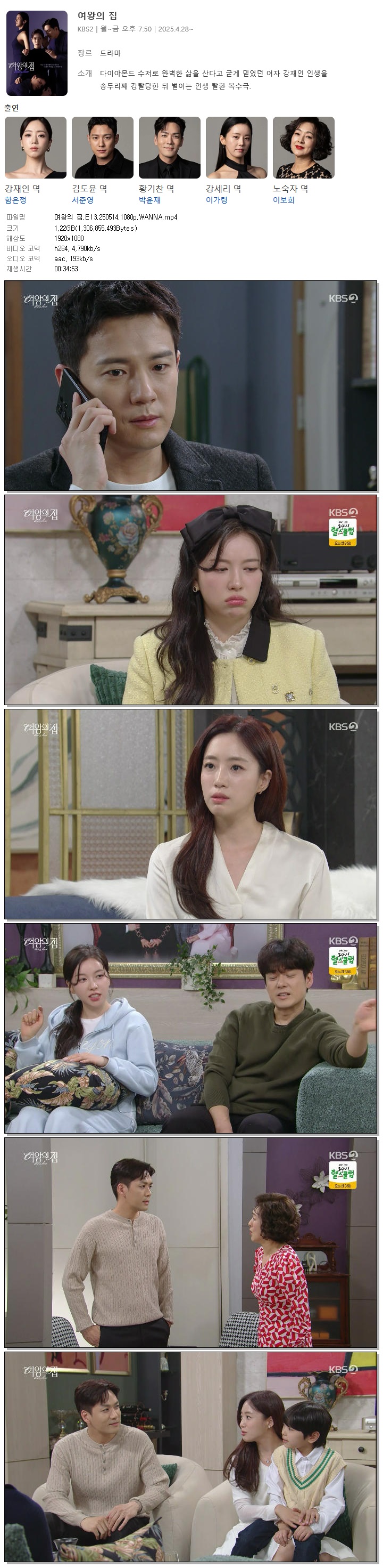 [KBS2] 여왕의 집.E13.250514.1080p.WANNA[함은정, 서준영].mp4 1.2 G 00:34:53 1920x1080