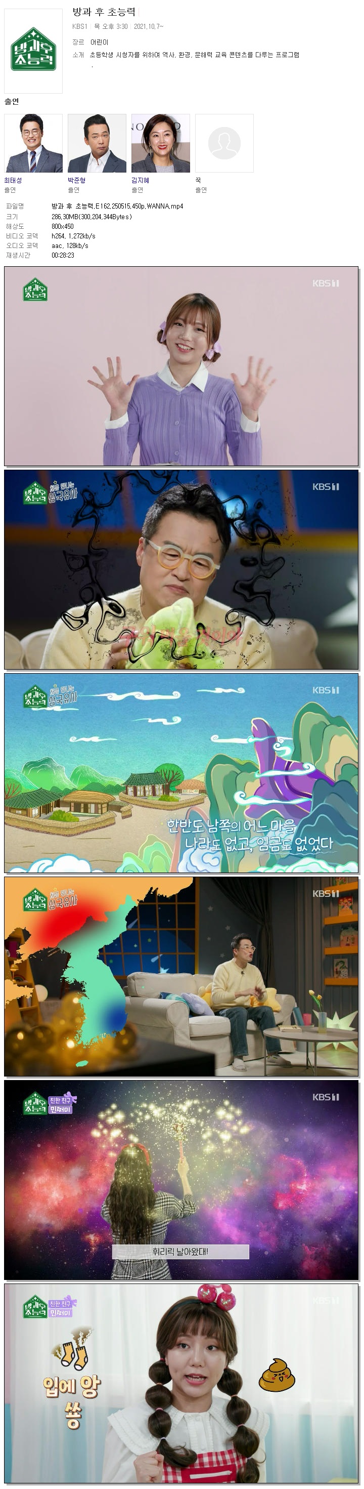 [KBS1] 방과 후 초능력.E162.250515.450p.WANNA.mp4 286.3 M 00:28:23 800x450