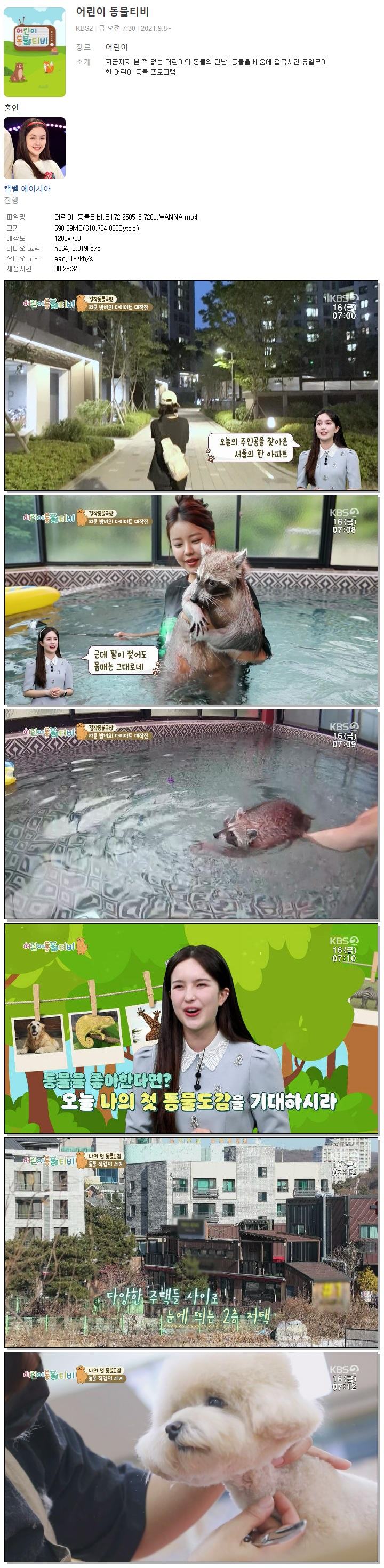 | [KBS2] 어린이 동물티비.E172.250516.720p.WANNA[캠벨 에이시아].mp4 | 590.1 M | 00:25:34 | 1280x720 |