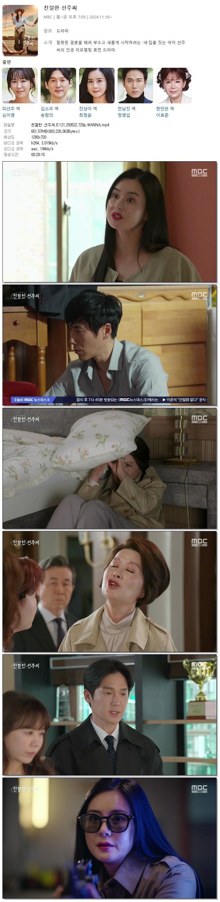 [MBC] 친절한 선주씨.E121.250522.720p.WANNA[심이영, 송창의] 다시보기 토렌트