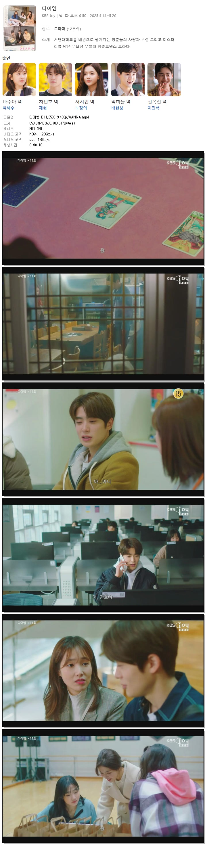 [KBS JOY] 디어엠.E11.250519.450p.WANNA[박혜수, 재현] 다시보기 토렌트