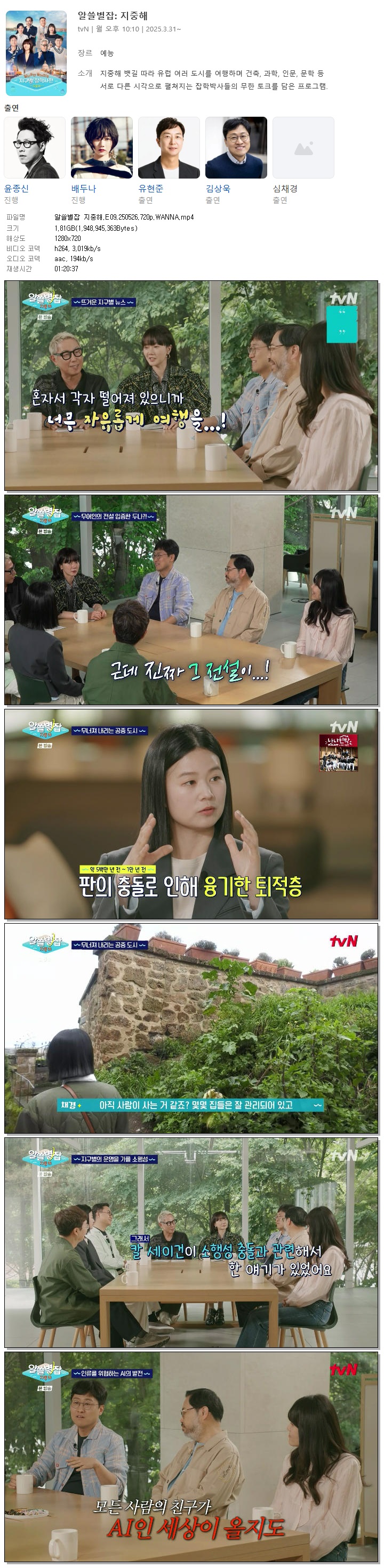 [TVN] 알쓸별잡 지중해.E09.250526.720p.WANNA[윤종신, 배두나] 다시보기 토렌트