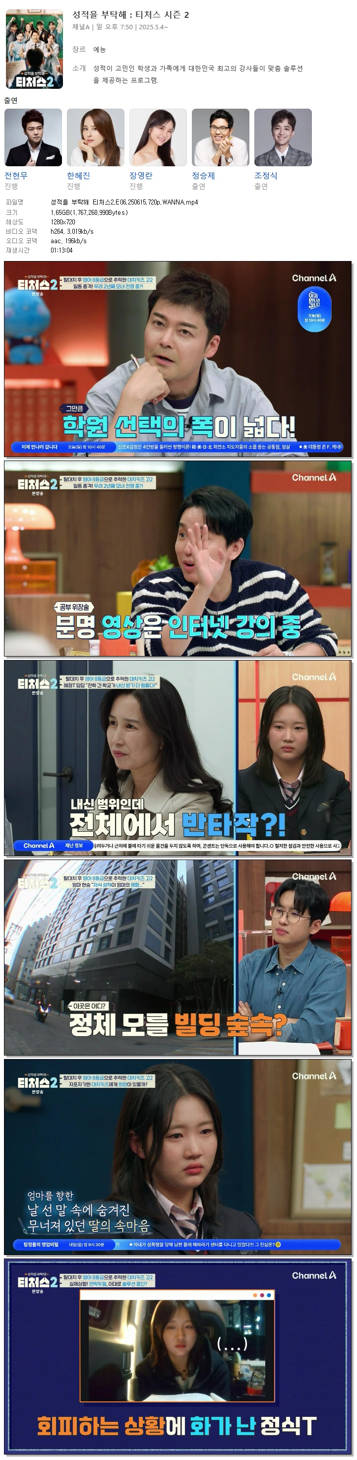 [채널A] 성적을 부탁해 티처스2.E06.250615.720p.WANNA[전현무, 한혜진] 다시보기 토렌트