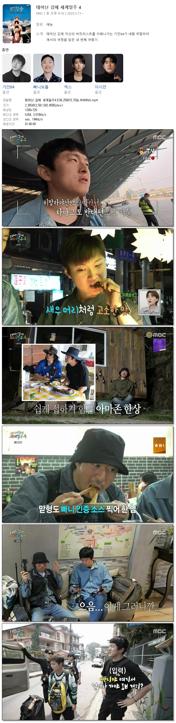 [MBC] 태어난 김에 세계일주4.E06.250615.720p.WANNA[기안84, 덱스] 다시보기 토렌트