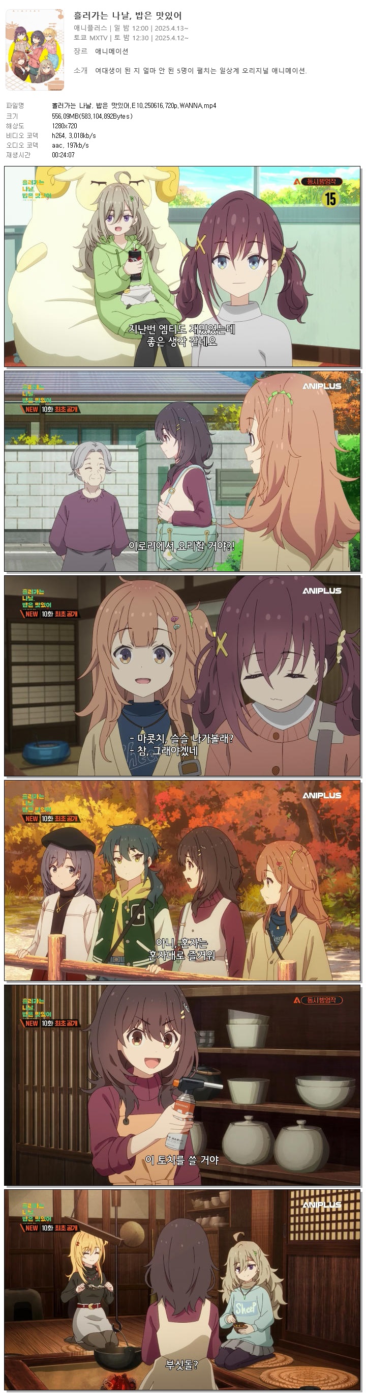 흘러가는 나날, 밥은 맛있어.E10.250616.720p.WANNA 다시보기 토렌트