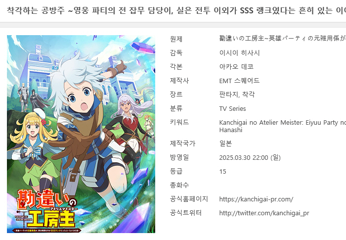 [애니] 착각하는 공방주 [영웅 파티] 01-12완결 -모험 판타지 액션- 다시보기 토렌트