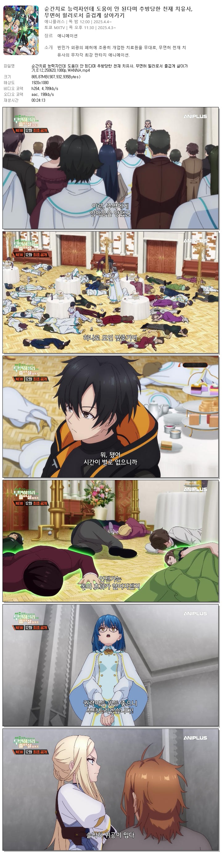순간치료 능력자인데 도움이 안 된다며 추방당한 천재 치유사, 무면허 힐러로서 즐겁게 살아가기.E12.250620.1080p.WANNA