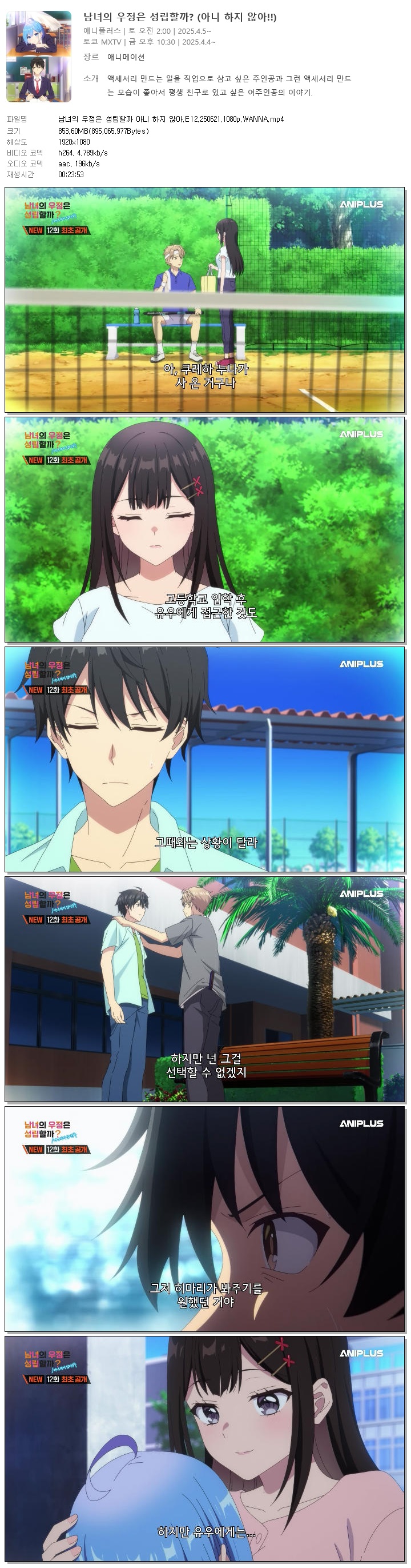 남녀의 우정은 성립할까 아니 하지 않아.E12.250621.1080p.WANNA 다시보기 토렌트