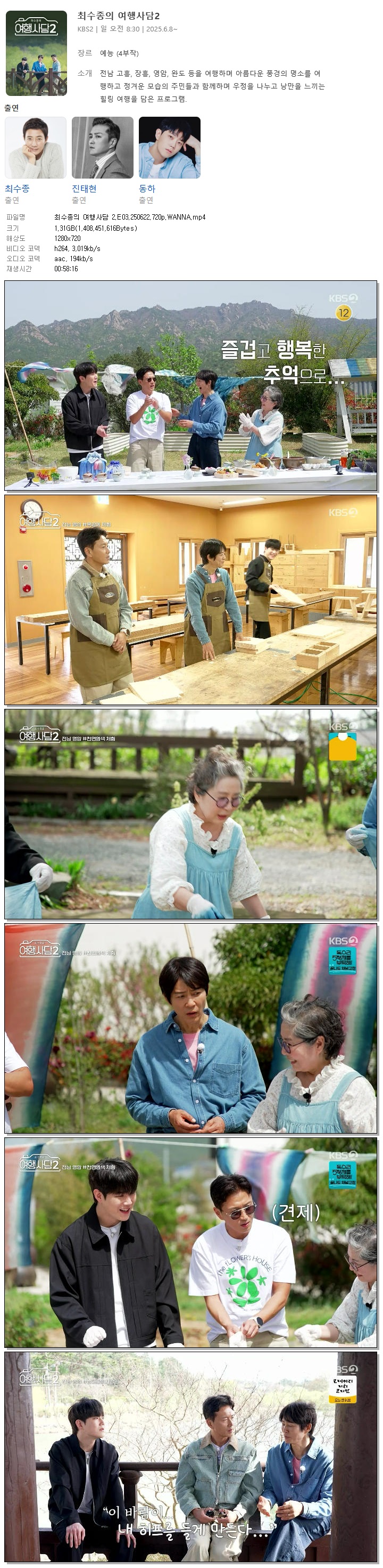 [KBS2] 최수종의 여행사담 2.E03.250622.720p.WANNA[최수종, 진태현] 다시보기 토렌트