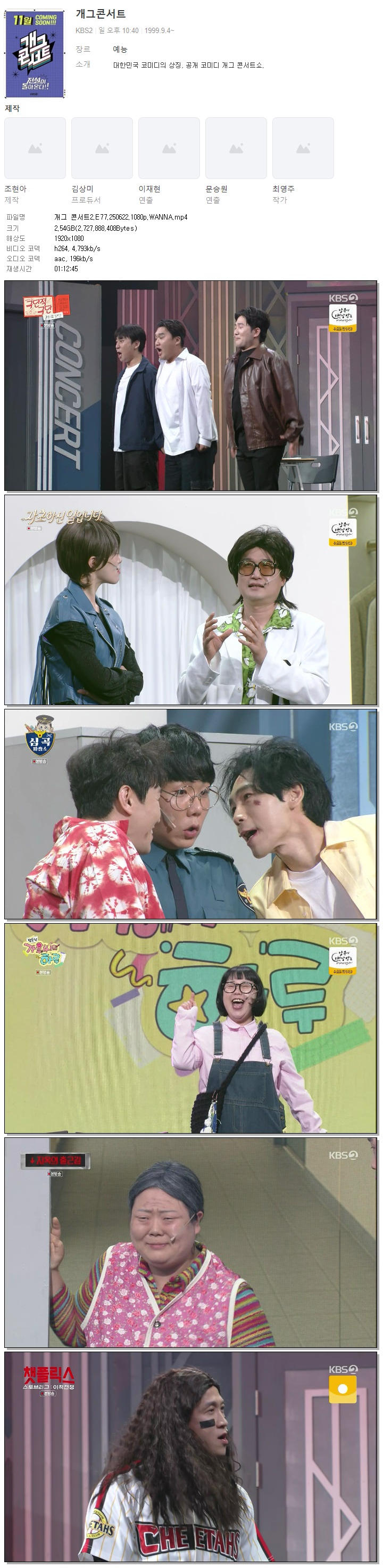 [KBS2] 개그 콘서트2.E77.250622.1080p.WANNA[신윤승, 김영희].mp4 2.5 G 01:12:45 1920x1080