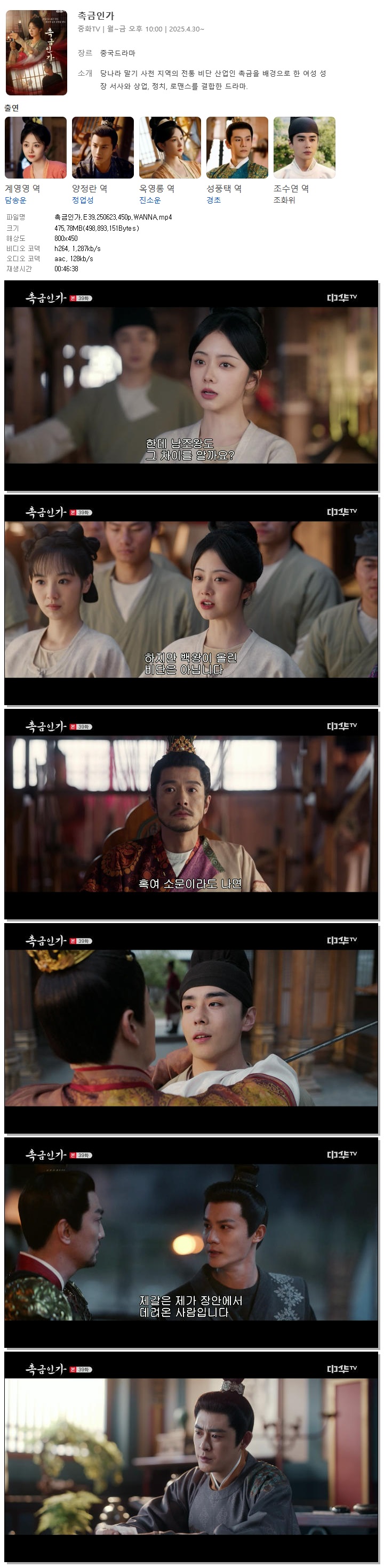 [중화TV] 촉금인가.E39.250623.450p.WANNA[담송운, 정업성].mp4 475.8 M 00:46:38 800x450