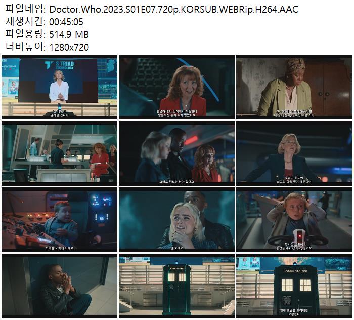Doctor.Who.2023.S01E07.720p.KORSUB.WEBRip.H264.AAC.mp4 514.9 M 00:45:05 1280x720