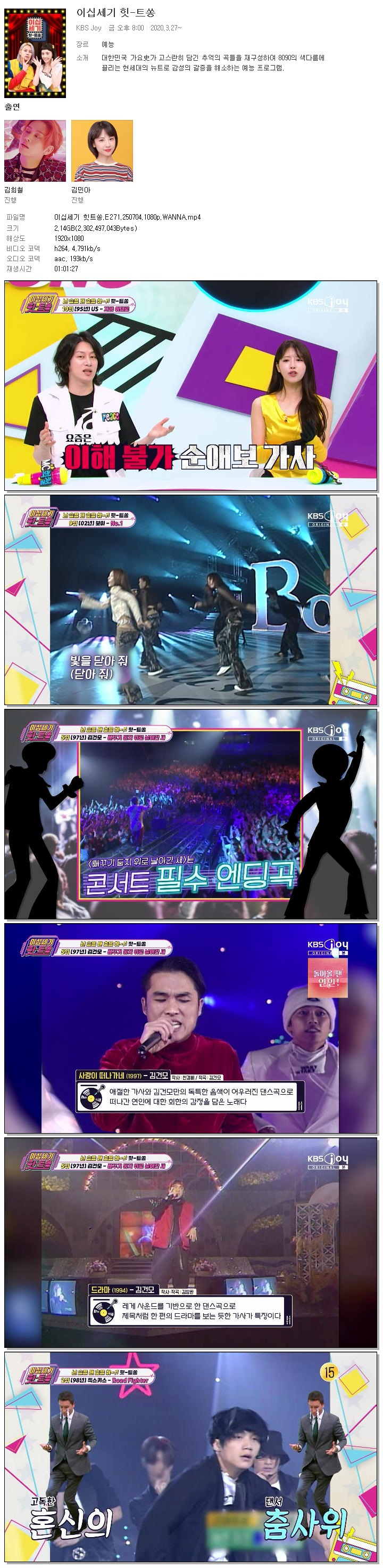 이십세기 힛트쏭.E271.250704.1080p.WANNA 다시보기 토렌트