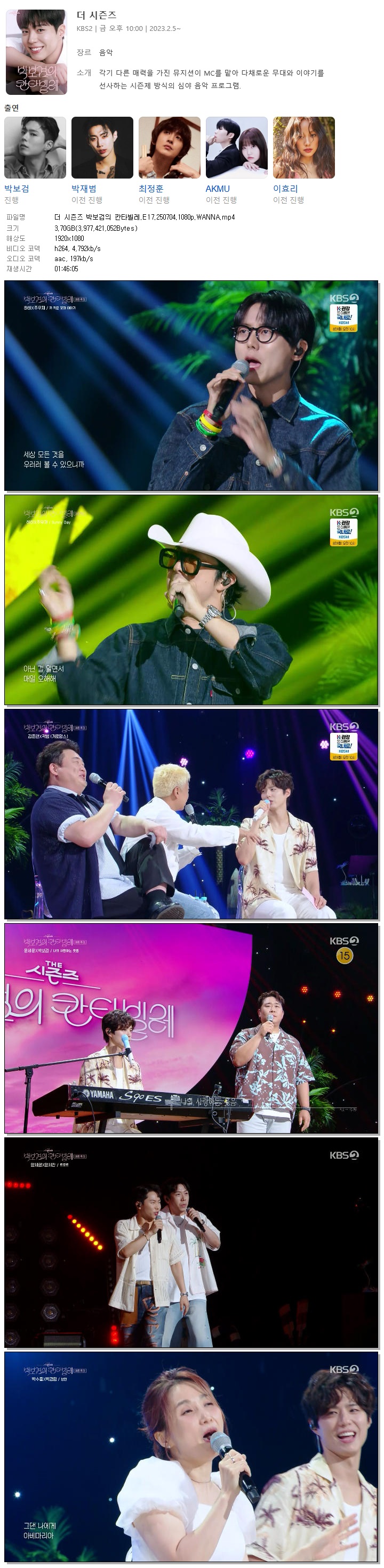 [KBS2] 더 시즌즈 박보검의 칸타빌레.E17.250704.1080p.WANNA[하하, 주우재].mp4 3.7 G 01:46:05 1920x1080