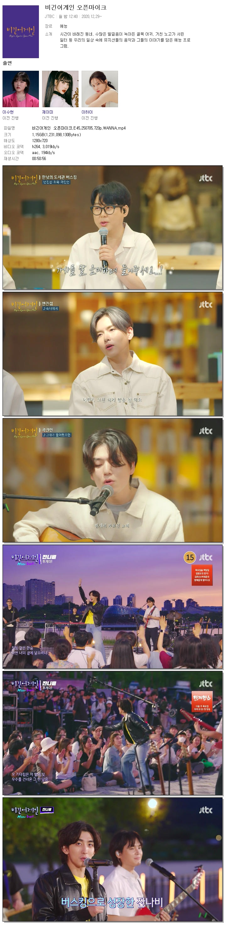 | [JTBC] 비긴어게인 오픈마이크.E45.250705.720p.WANNA.mp4 | 1.1 G | 00:50:56 | 1280x720 |