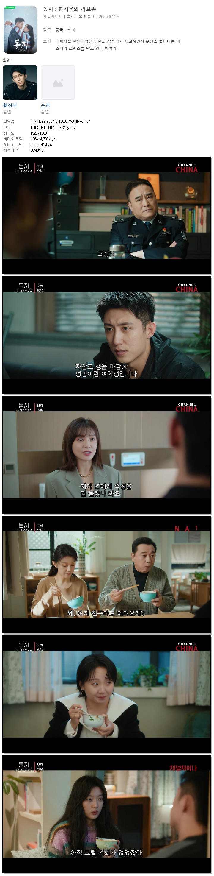 [채널차이나] 동지.E22.250710.1080p.WANNA[황경유, 손천].mp4 1.4 G 00:40:15 1920x1080