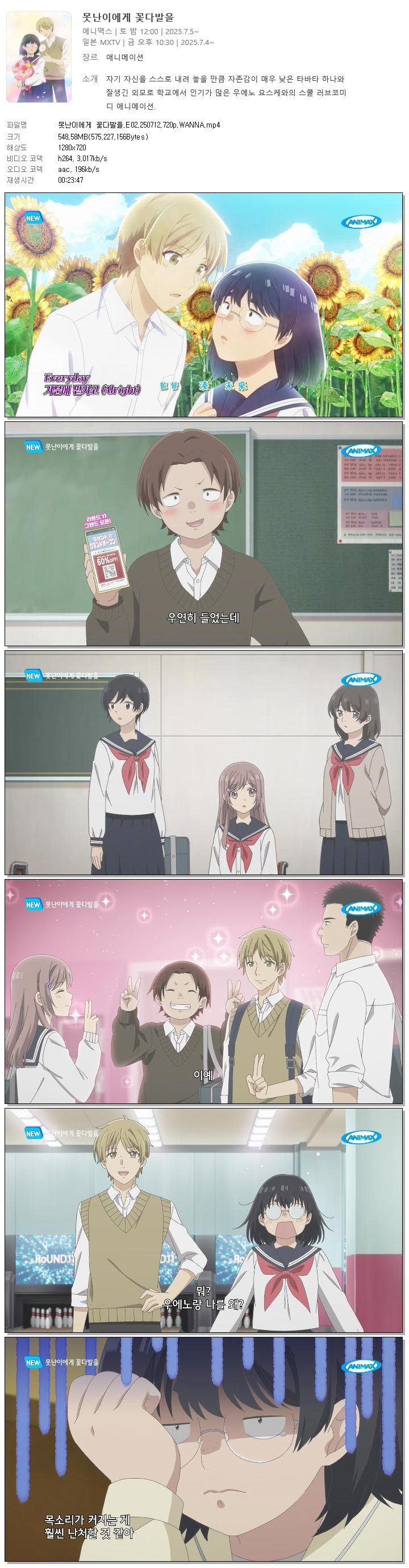 | 못난이에게 꽃다발을.E02.250712.720p.WANNA.mp4 | 548.6 M | 00:23:47 | 1280x720 |