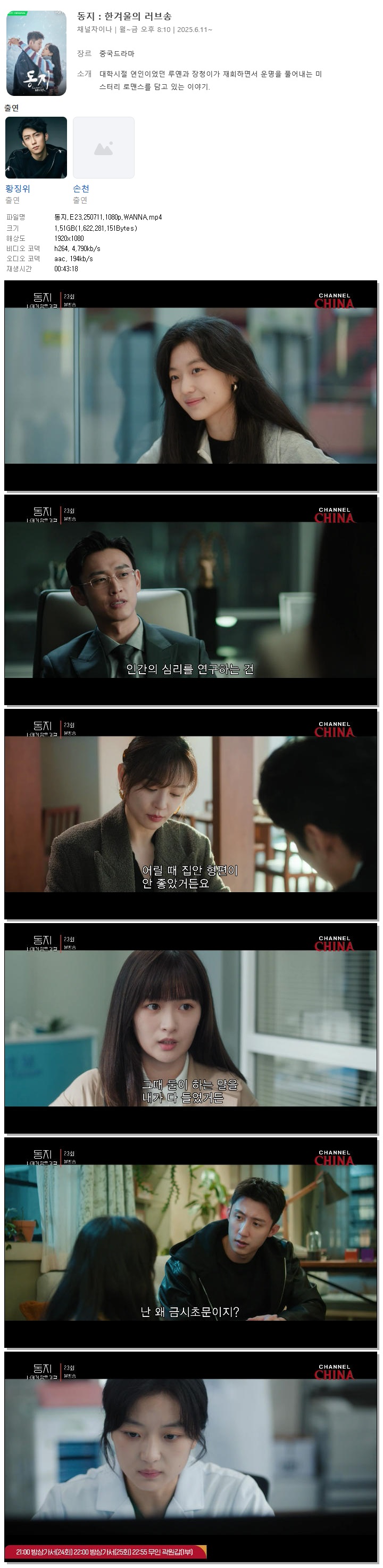 [채널차이나] 동지.E23.250711.1080p.WANNA[황경유, 손천] 다시보기 토렌트
