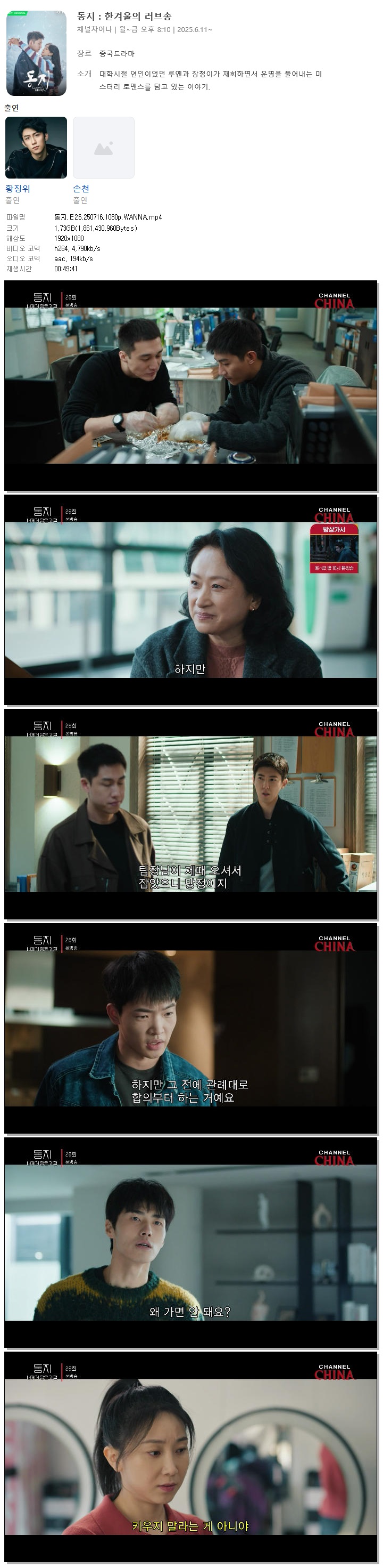 [채널차이나] 동지.E26.250716.1080p.WANNA[황경유, 손천] 다시보기 토렌트