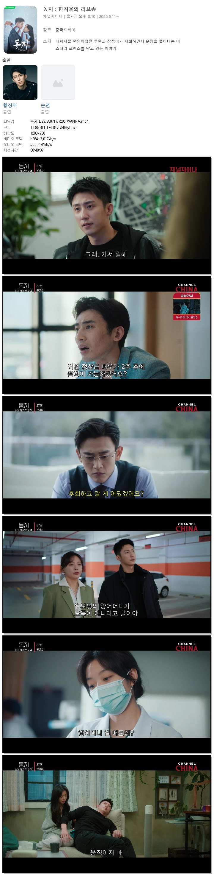 [채널차이나] 동지.E27.250717.720p.WANNA[황경유, 손천] 다시보기 토렌트