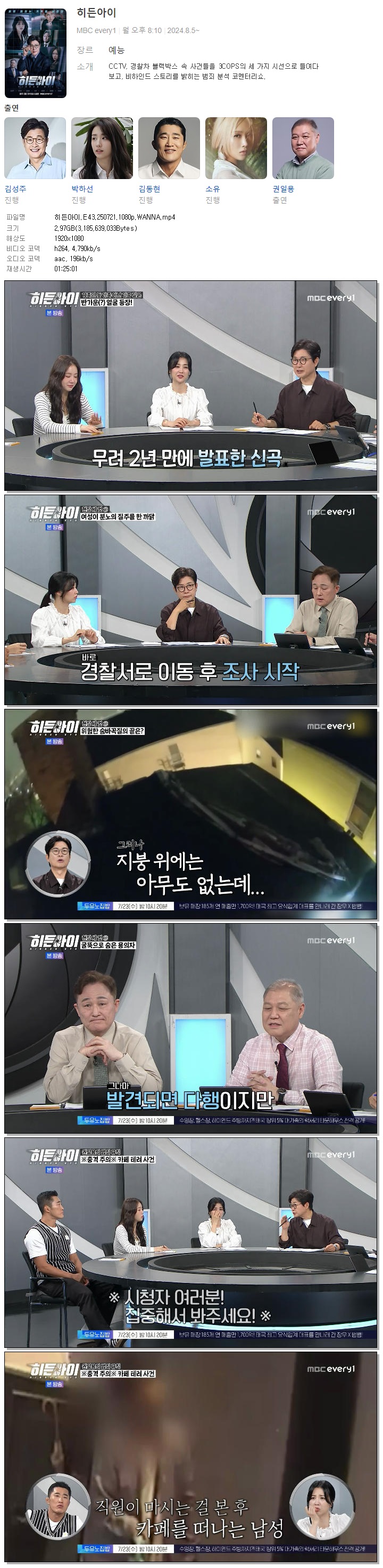 [MBC Every1] 히든아이.E43.250721.1080p.WANNA[김성주, 박하선] 다시보기 토렌트