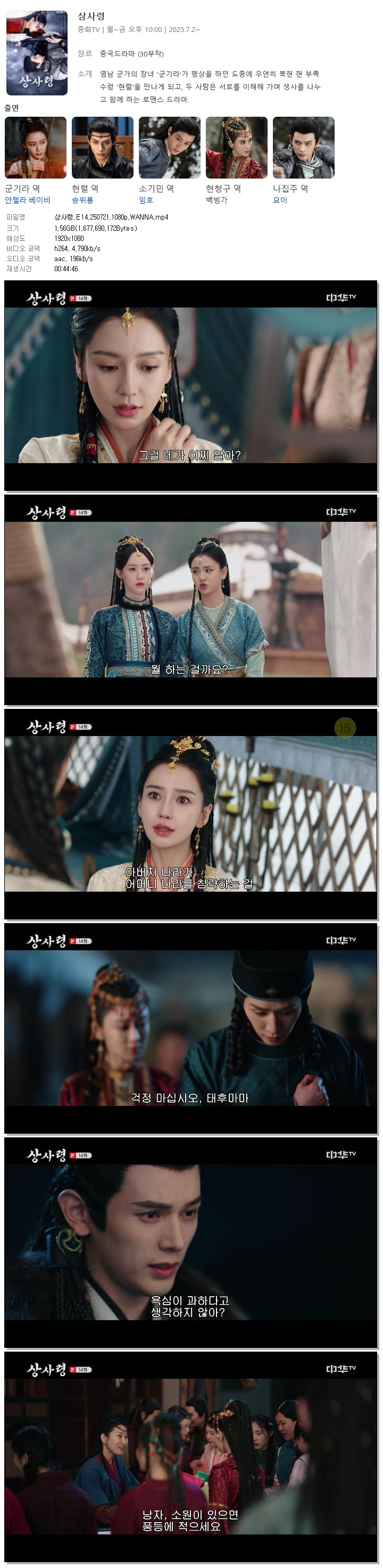 [중화TV] 상사령.E14.250721.1080p.WANNA[송위룡, 안젤라베이비].mp4 1.6 G 00:44:46 1920x1080