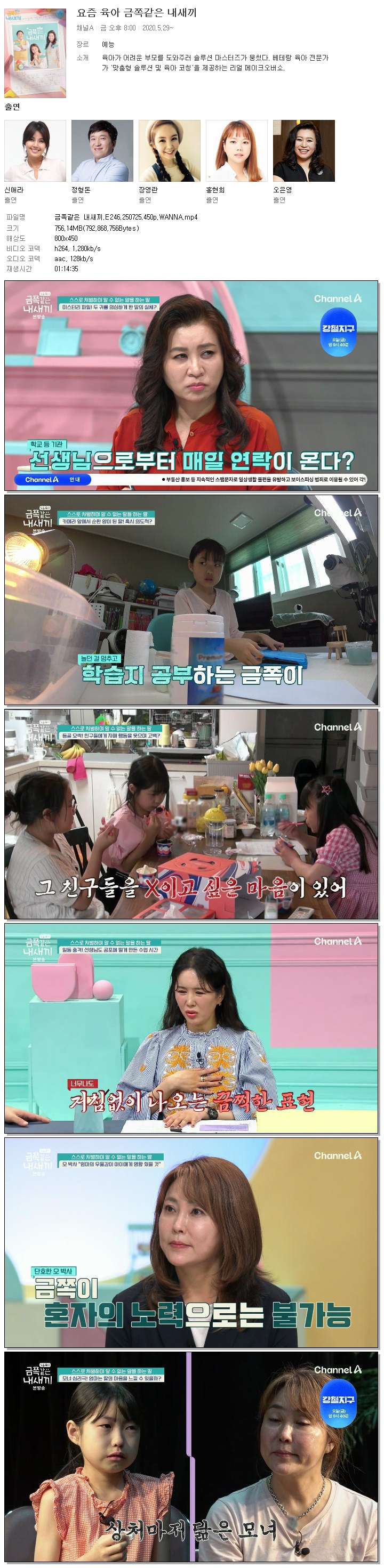 | [채널A] 금쪽같은 내새끼.E246.250725.450p.WANNA[오은영, 신애라].mp4 | 756.1 M | 01:14:35 | 800x450 |