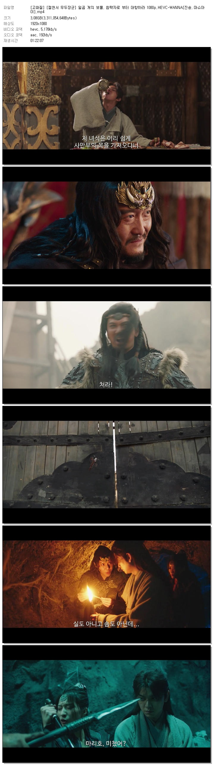 [고화질] [절천서 무두장군] 일곱 개의 보물, 침략자로 부터 대항하라 1080p.HEVC-WANNA[진송, 마슈아이].mp4 3.1 G 01:22:07 1920x1080
