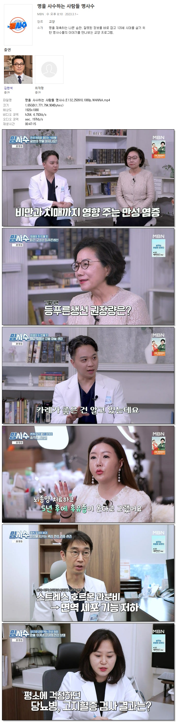 | [MBN] 명을 사수하는 사람들 명사수.E132.250910.1080p.WANNA[김한석, 최재형].mp4 | 1.7 G | 00:47:15 | 1920x1080 |