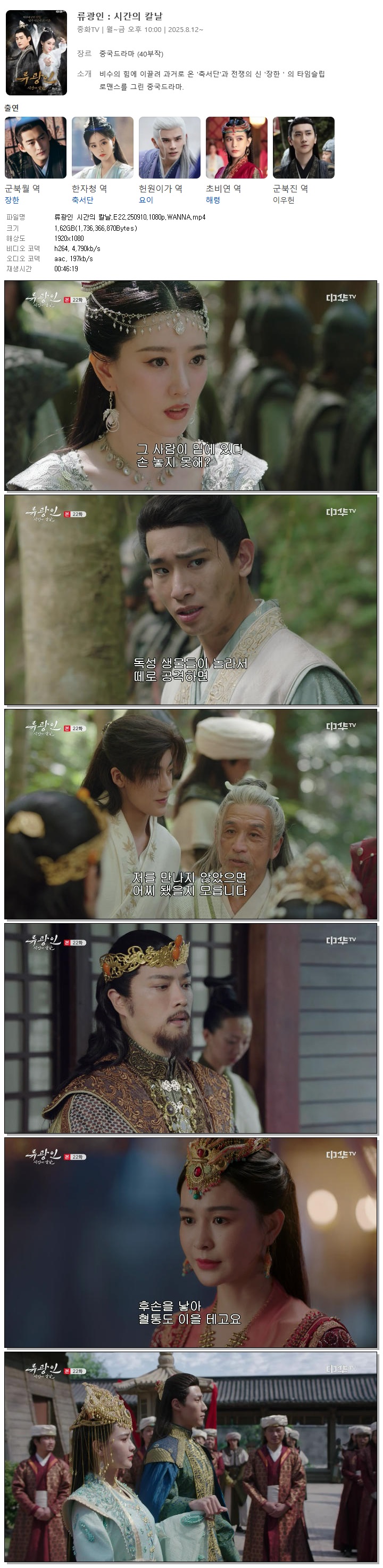 | [중화TV] 류광인 시간의 칼날.E22.250910.1080p.WANNA[군북월, 한자청].mp4 | 1.6 G | 00:46:19 | 1920x1080 |