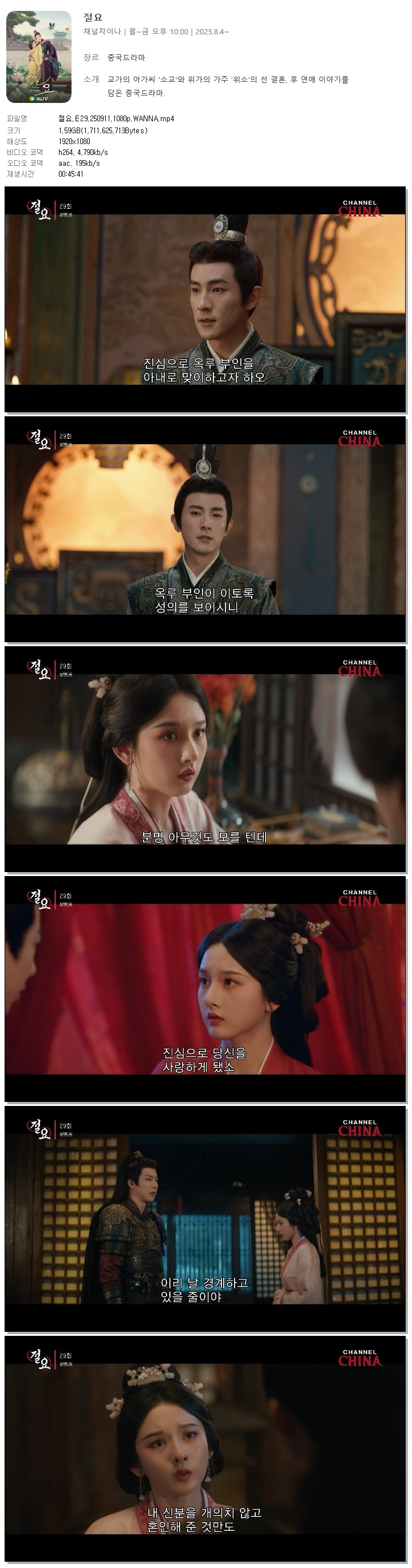 [채널차이나] 절요.E29.250911.1080p.WANNA[송조아, 류우녕] 다시보기 토렌트