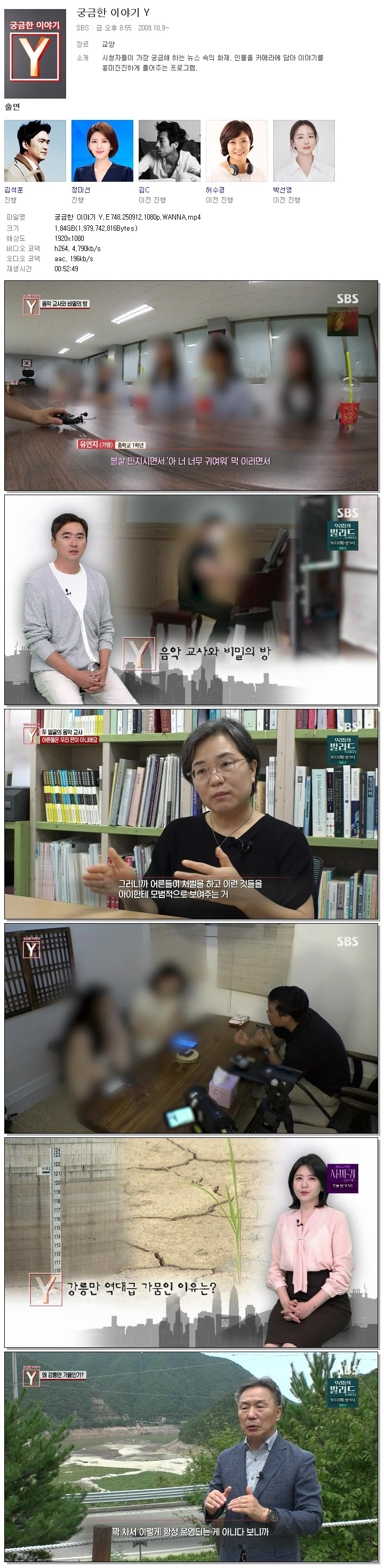 | [SBS] 궁금한 이야기 Y.E748.250912.1080p.WANNA[김석훈, 정미선].mp4 | 1.8 G | 00:52:49 | 1920x1080 |