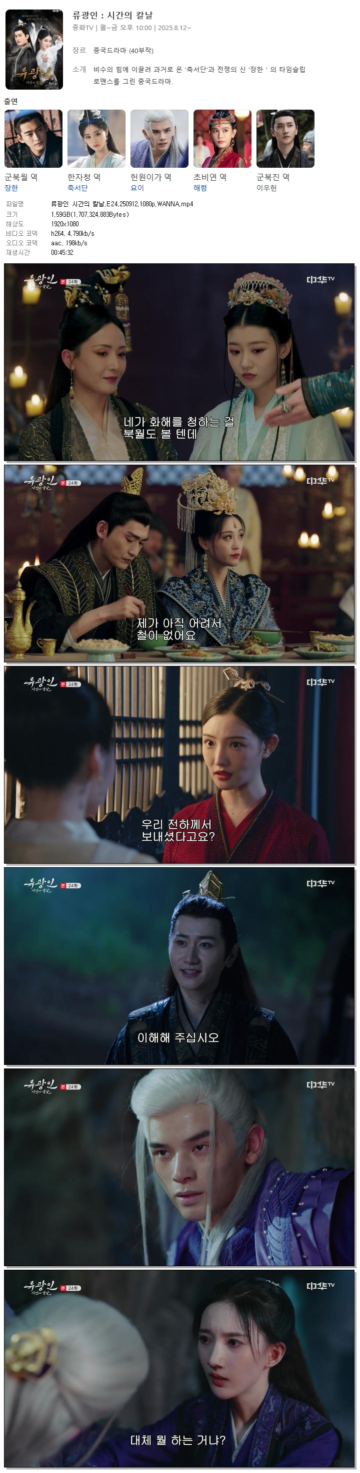 [중화TV] 류광인 시간의 칼날.E24.250912.1080p.WANNA[군북월, 한자청].mp4 1.6 G 00:45:32 1920x1080