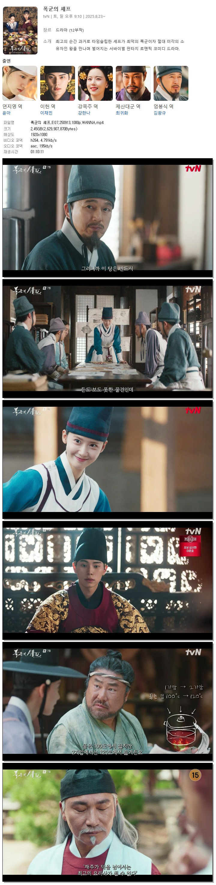 [TVN] 폭군의 셰프.E07.250913.1080p.WANNA[임윤아, 이채민].mp4 2.4 G 01:10:11 1920x1080