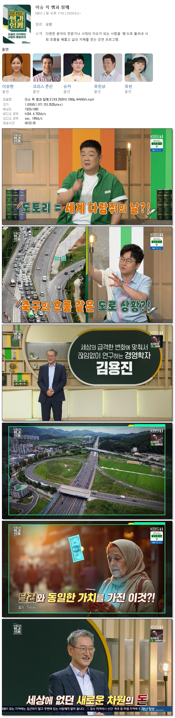 [KBS1] 이슈 픽 쌤과 함께.E249.250914.1080p.WANNA[이승현, 유민상] 다시보기 토렌트