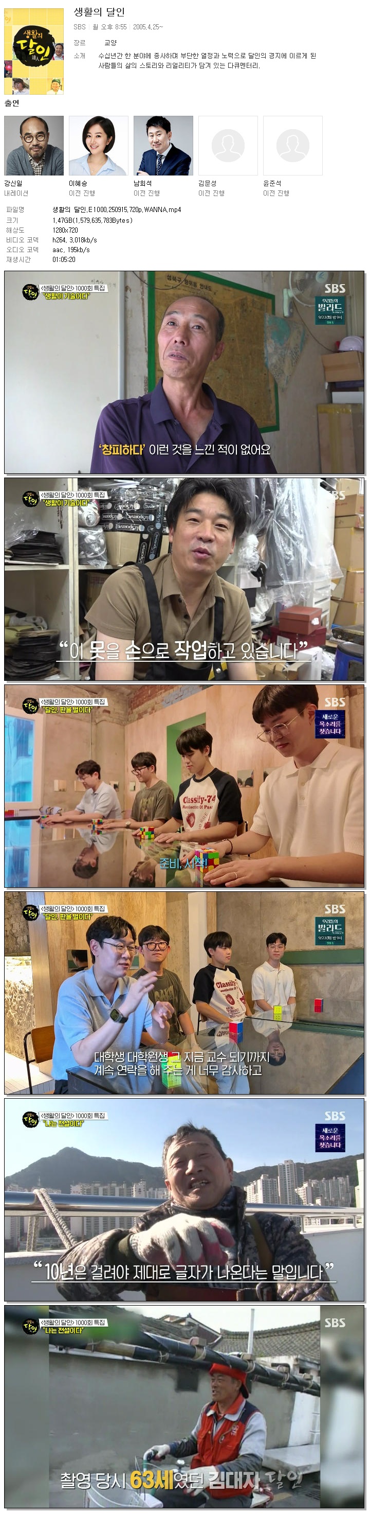[SBS] 생활의 달인.E1000.250915.720p.WANNA.mp4 1.5 G 01:05:20 1280x720