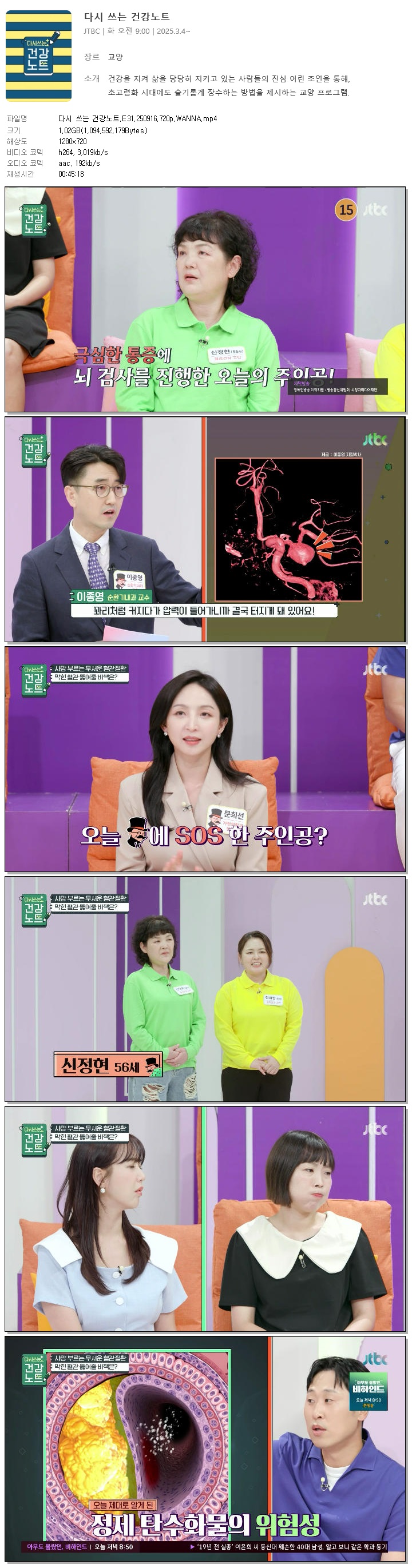 [JTBC] 다시 쓰는 건강노트.E31.250916.720p.WANNA 다시보기 토렌트