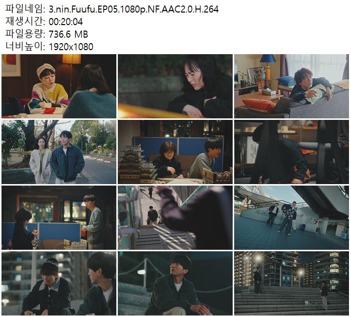 | 3.nin.Fuufu.EP05.1080p.NF.AAC2.0.H.264.mkv | 736.6 M | 00:20:04 | 1920x1080 |