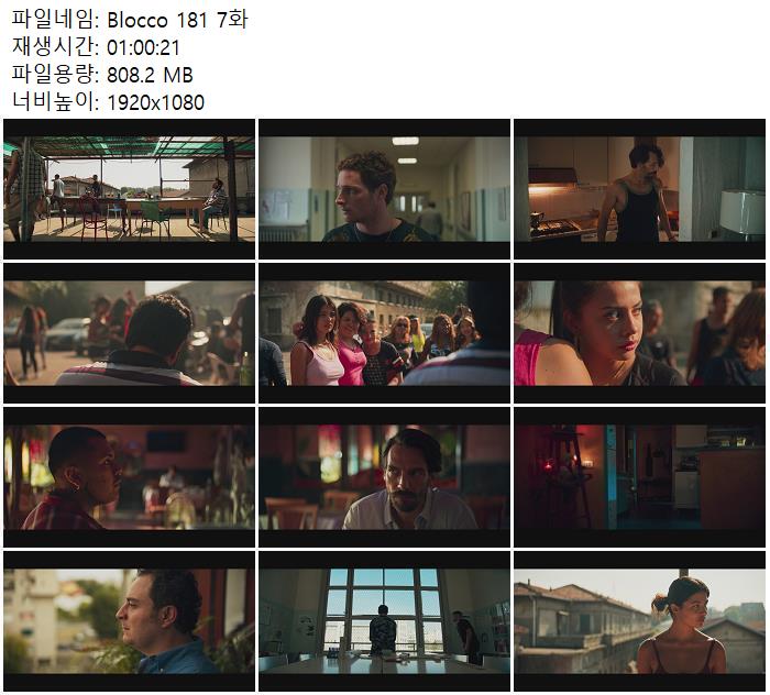 | Blocco 181 7화.mkv | 808.2 M | 01:00:21 | 1920x1080 |
