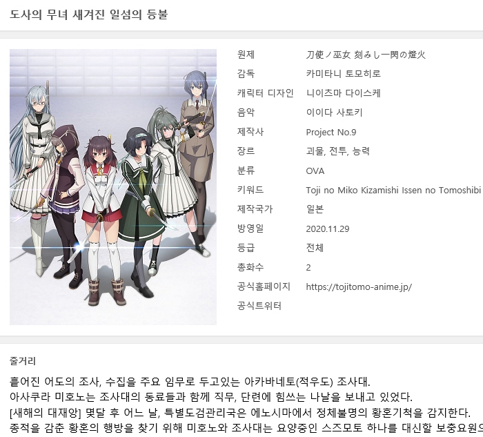 [애니] 도사의 무녀 - 새겨진 일섬의 등불 [OVA] 01-02완결 -전투 액션- 다시보기 토렌트